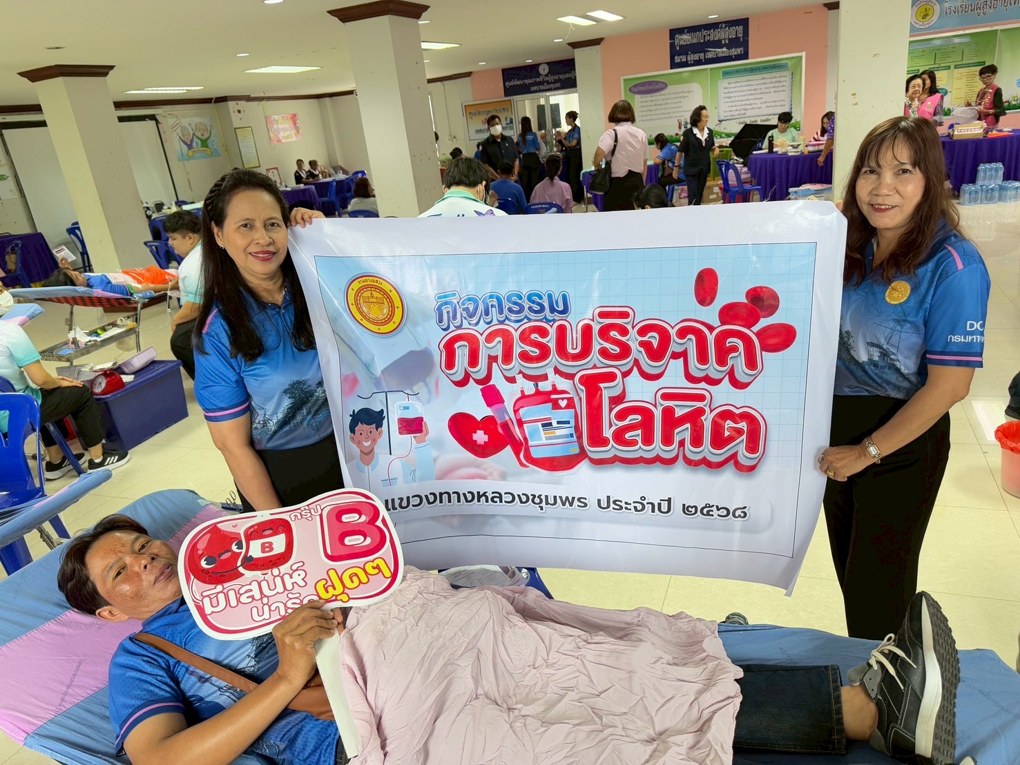 โดยนายกรีธา เดชพิณ ผู้อำนวยการแขวงทางหลวงชุมพร มอบหมายให้นางมาลี ไชยมงคล รองผู้อำนวยการฝ่ายบริหารพร้อมเจ้าหน้าที่ในสังกัด ร่วมกิจกรรมบริจาคโลหิตเพื่อถวายเป็นพระราชกุศล