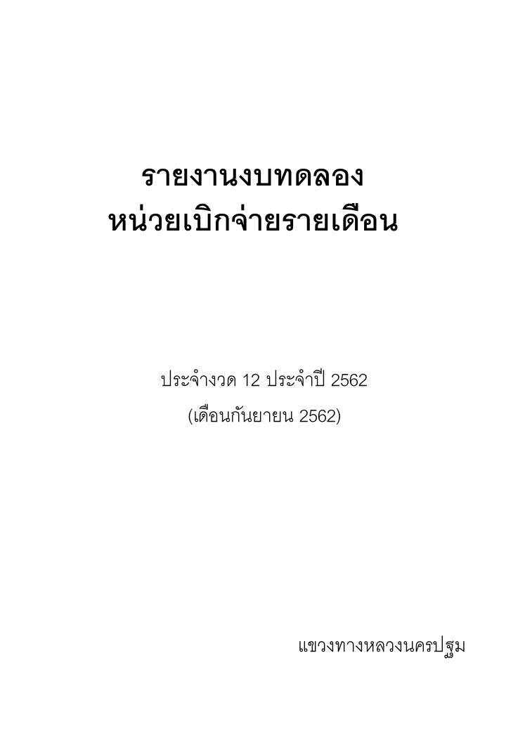 งบทดลอง ประจำเดือนธันวาคม 2562 |