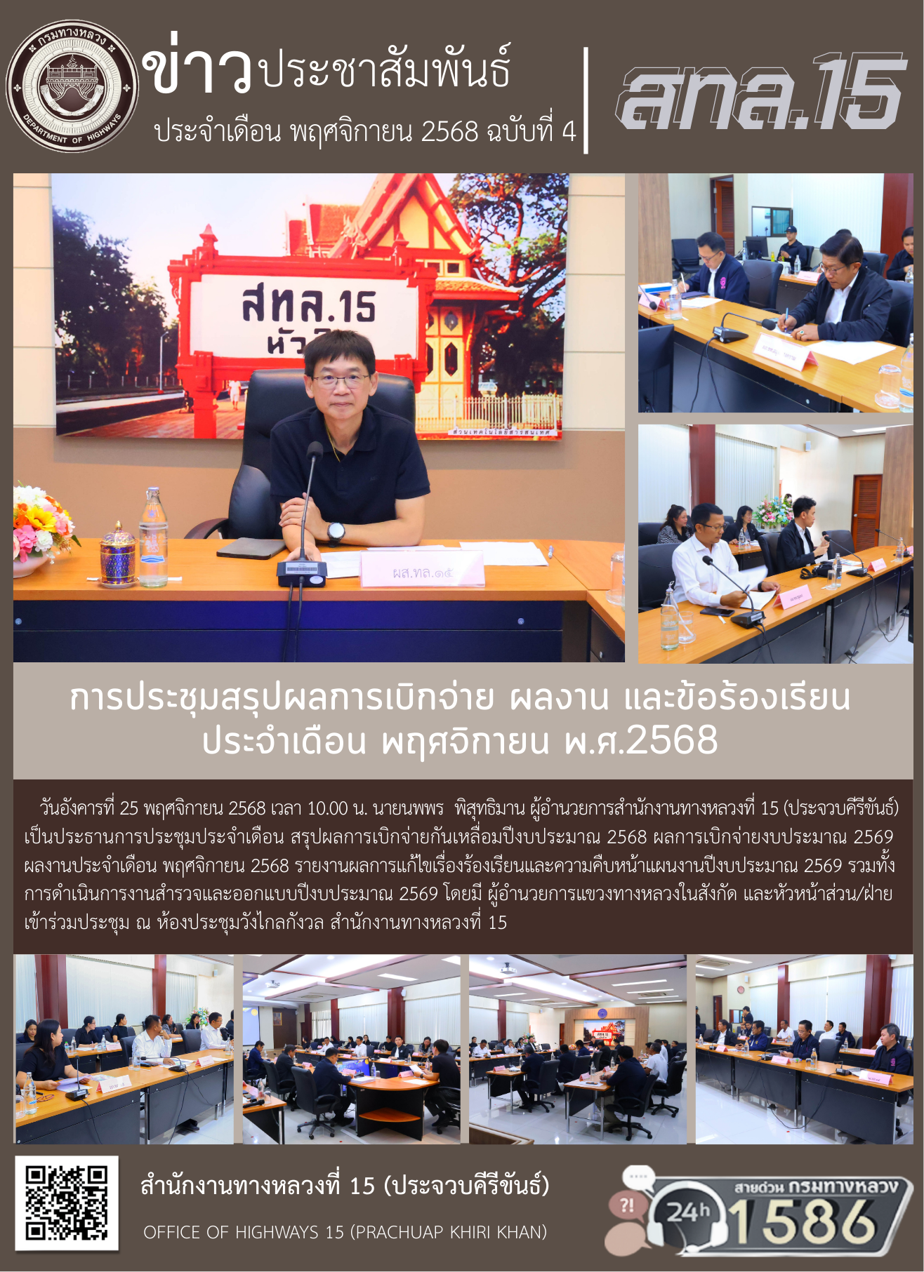 การประชุมสรุปผลการเบิกจ่าย ผลงาน และข้อร้องเรียน ประจำเดือน พฤศจิกายน พ.ศ.2568