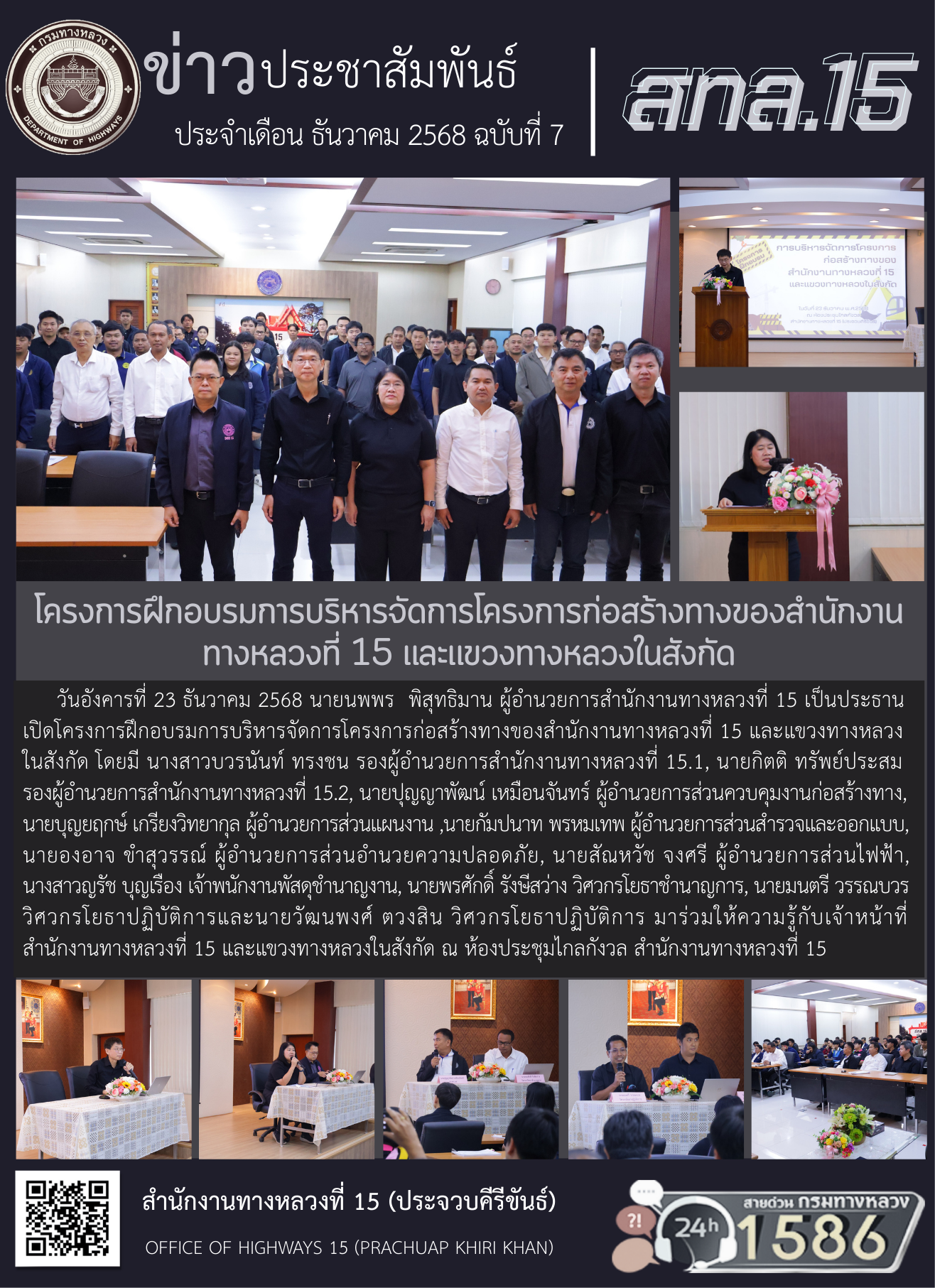 โครงการฝึกอบรมการบริหารจัดการโครงการก่อสร้างทางของสำนักงานทางหลวงที่ 15 และแขวงทางหลวงในสังกัด