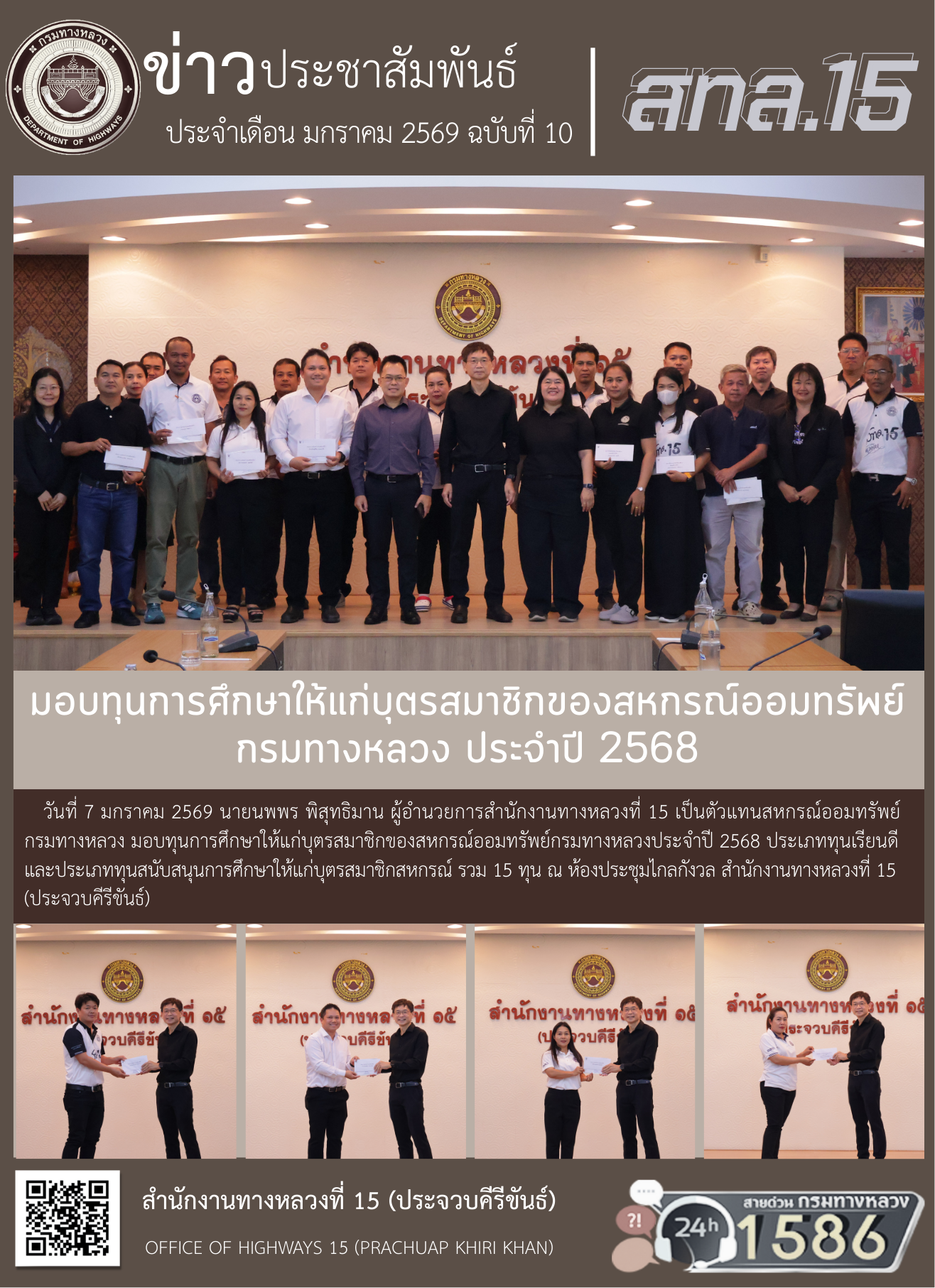 มอบทุนการศึกษาให้แก่บุตรสมาชิกของสหกรณ์ออมทรัพย์กรมทางหลวงประจำปี 2568