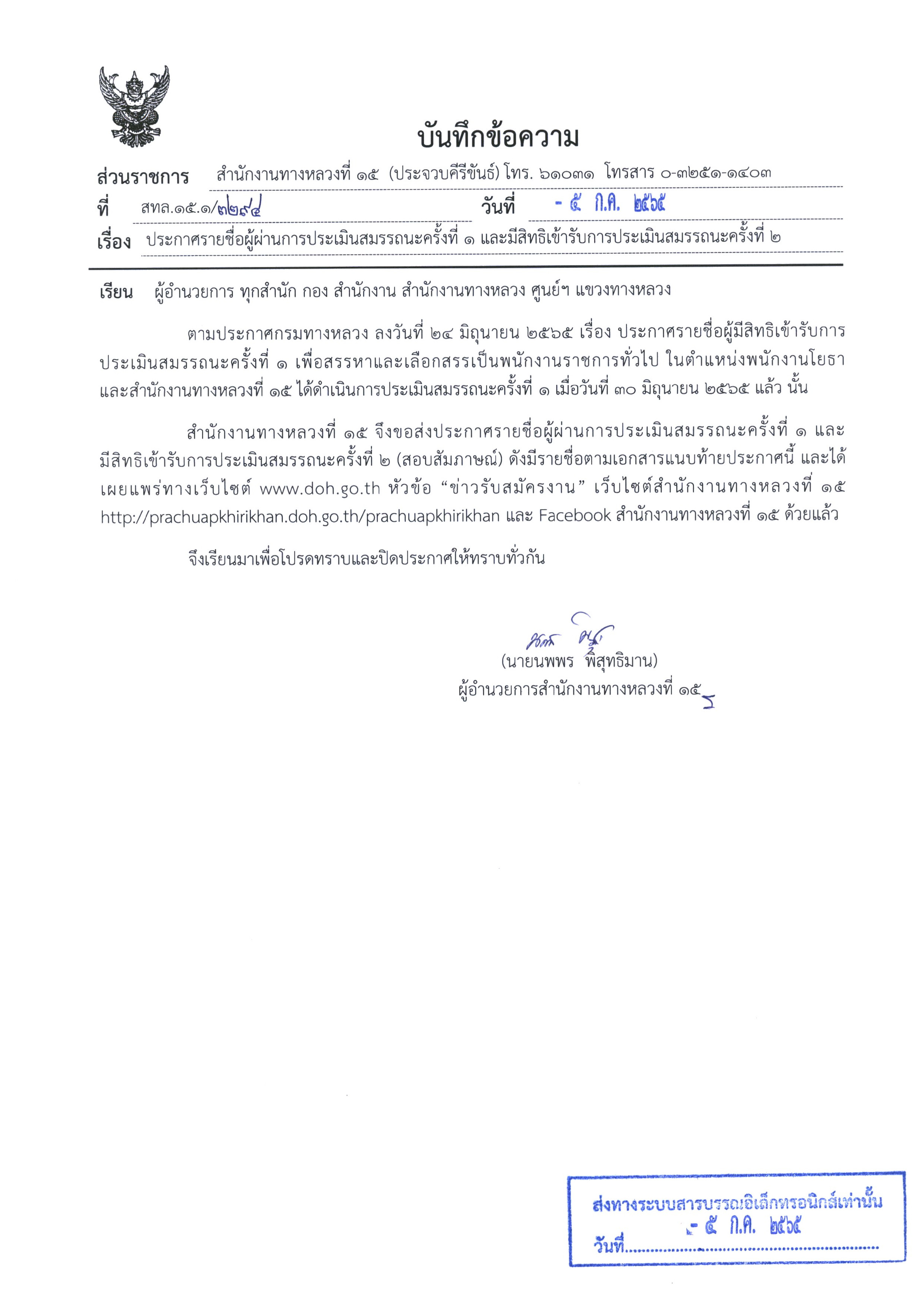 > ประกาศรายชื่อผู้ผ่านการประเมินสมรรถนะครั้ง 1 และมีสิทธิ์เข้ารับการประเมินสมรรถนะครั้ง 2