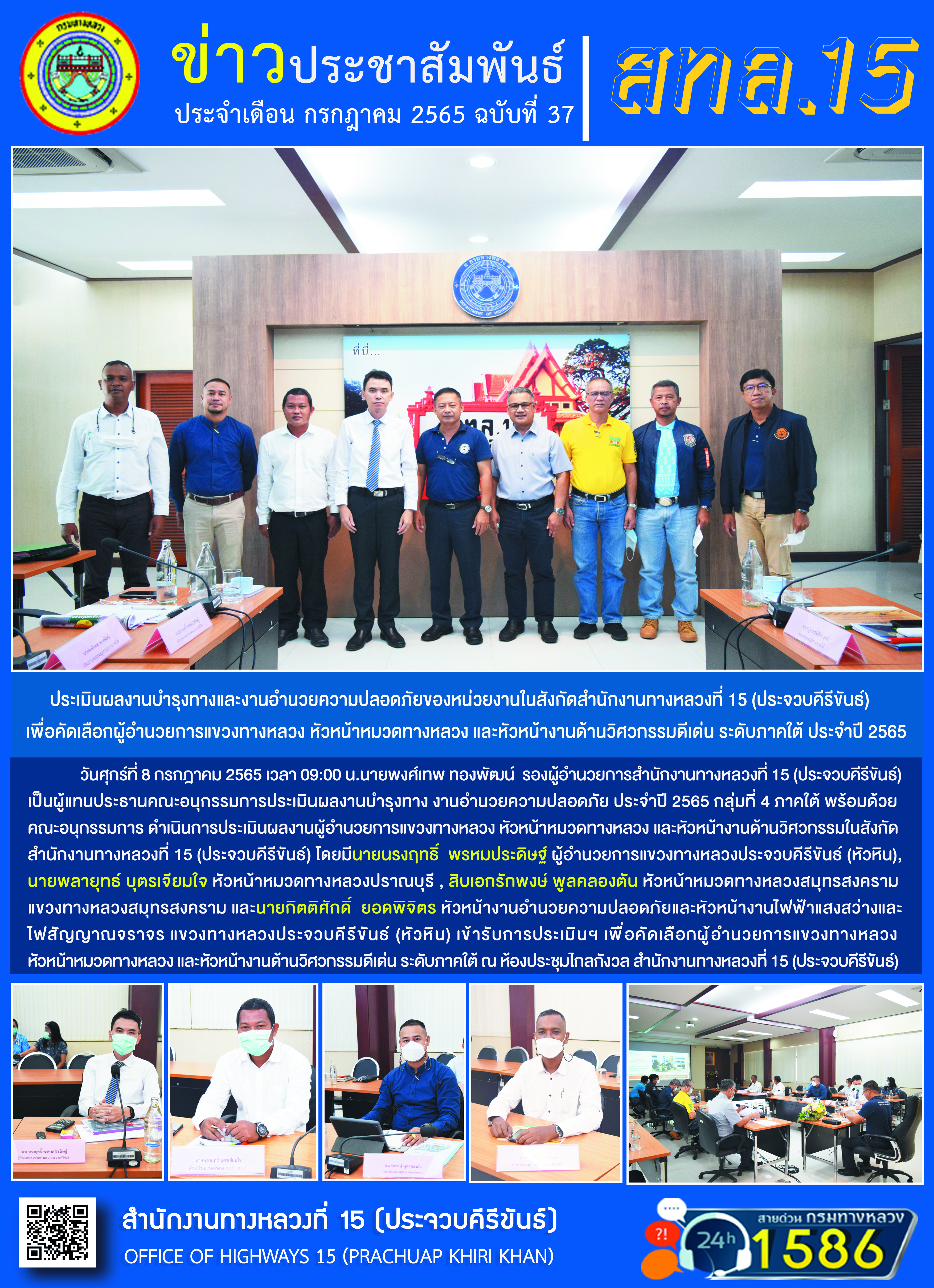ประเมินผลงานบำรุงทางและงานอำนวยความปลอดภัยของหน่วยงานในสังกัด สทล.15 ประจำภาคใต้ 2565