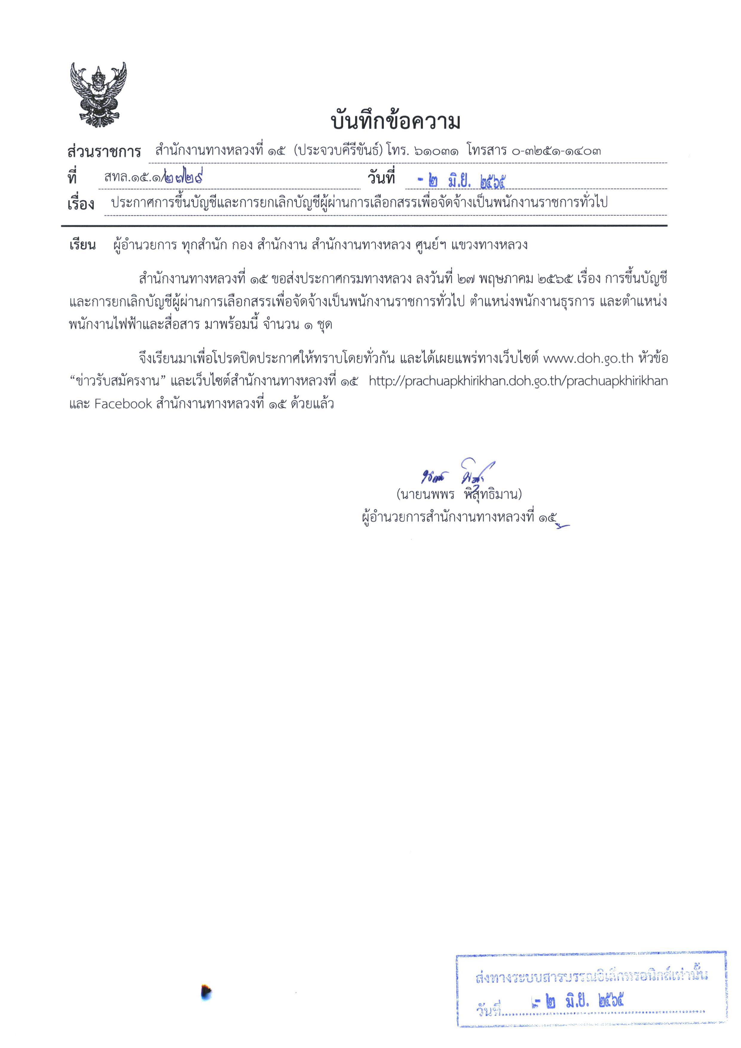 > ประกาศขึ้นบัญชีและยกเลิกบัญชีรายชื่อผู้ผ่านการเลือกสรรเพื่อจัดจ้างเป็นพนักงานราชการทั่วไป