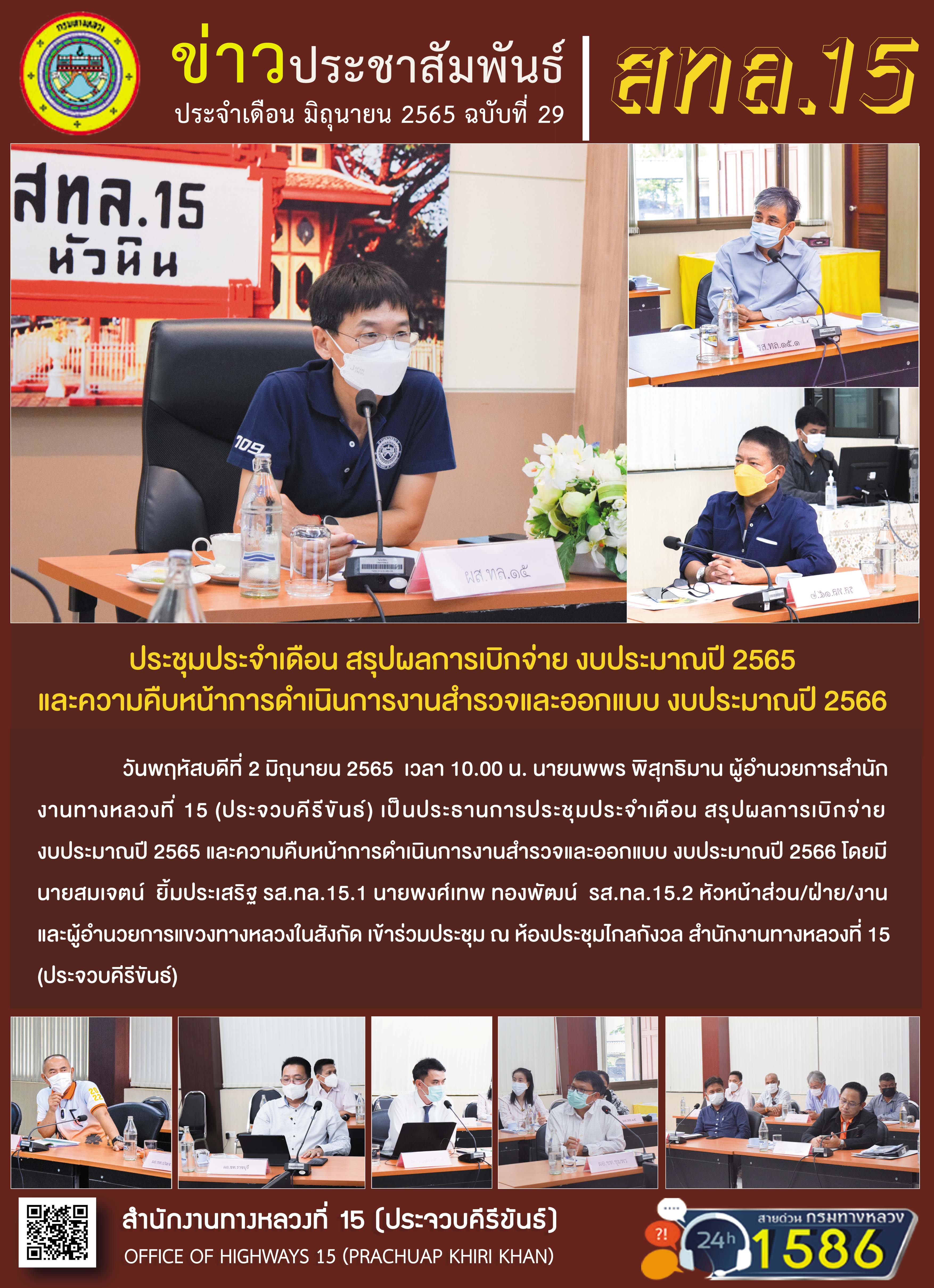 ประชุมประจำเดือน สรุปผลการเบิกจ่าย งบประมาณปี 2565 และฯ