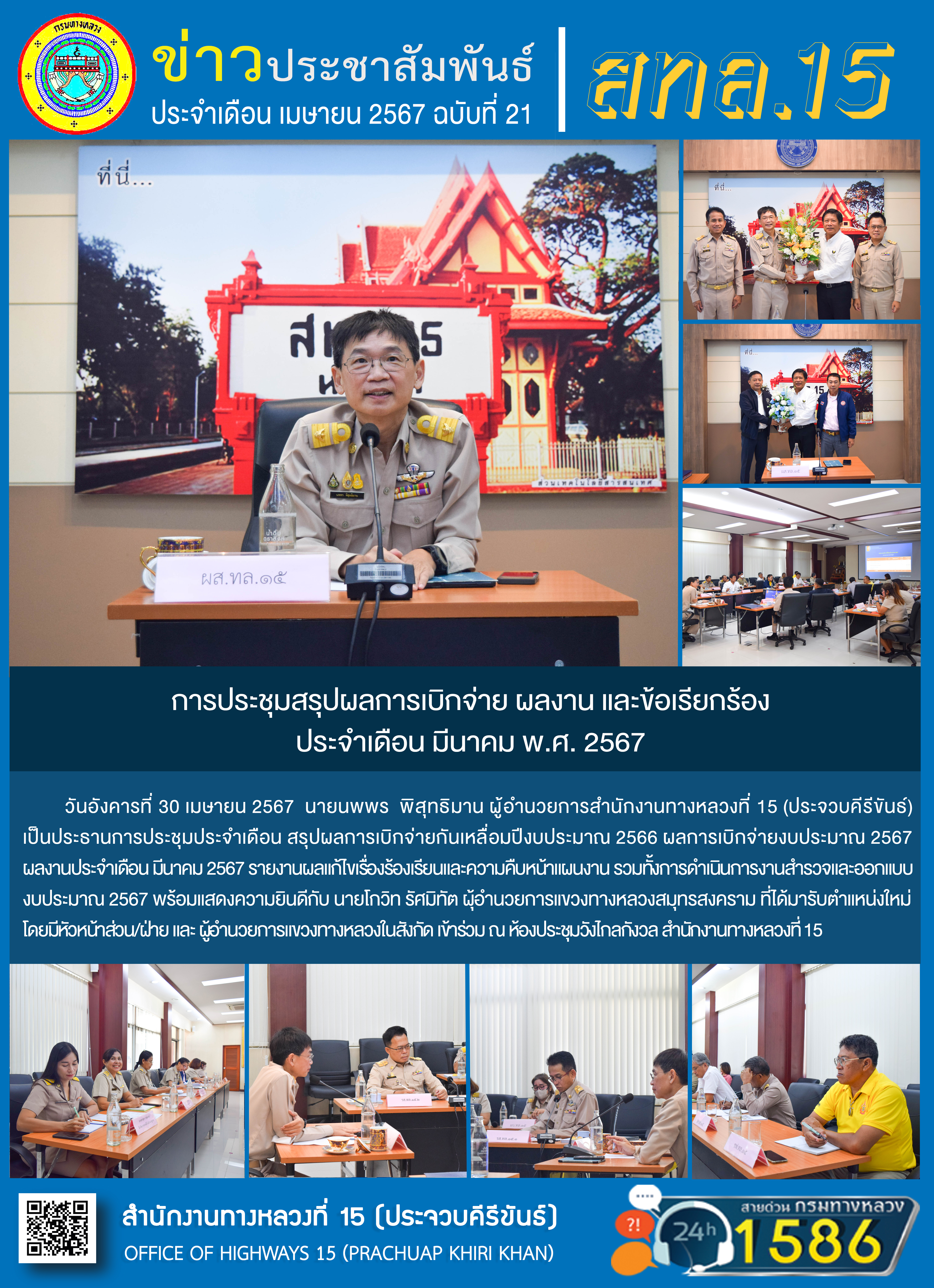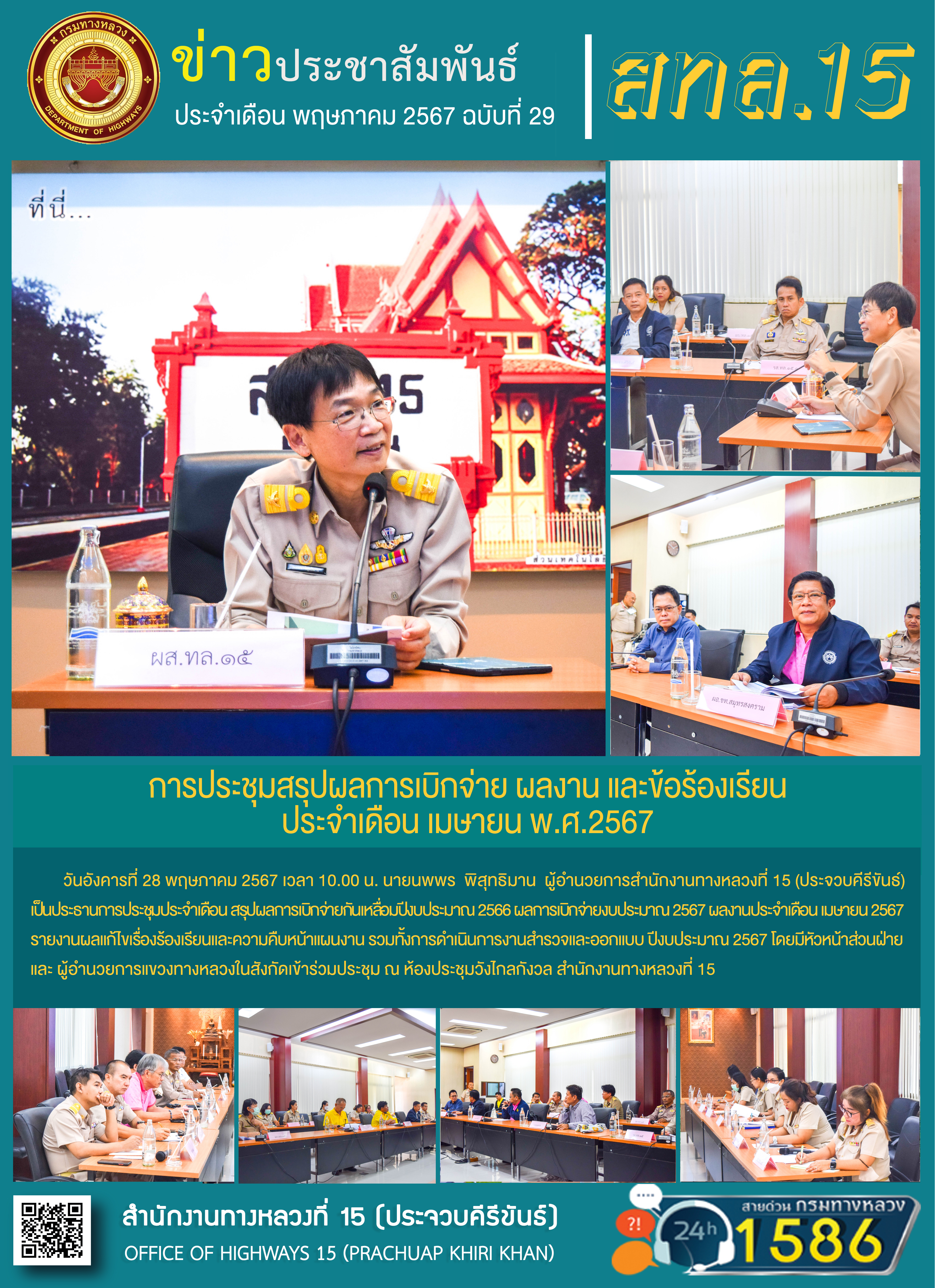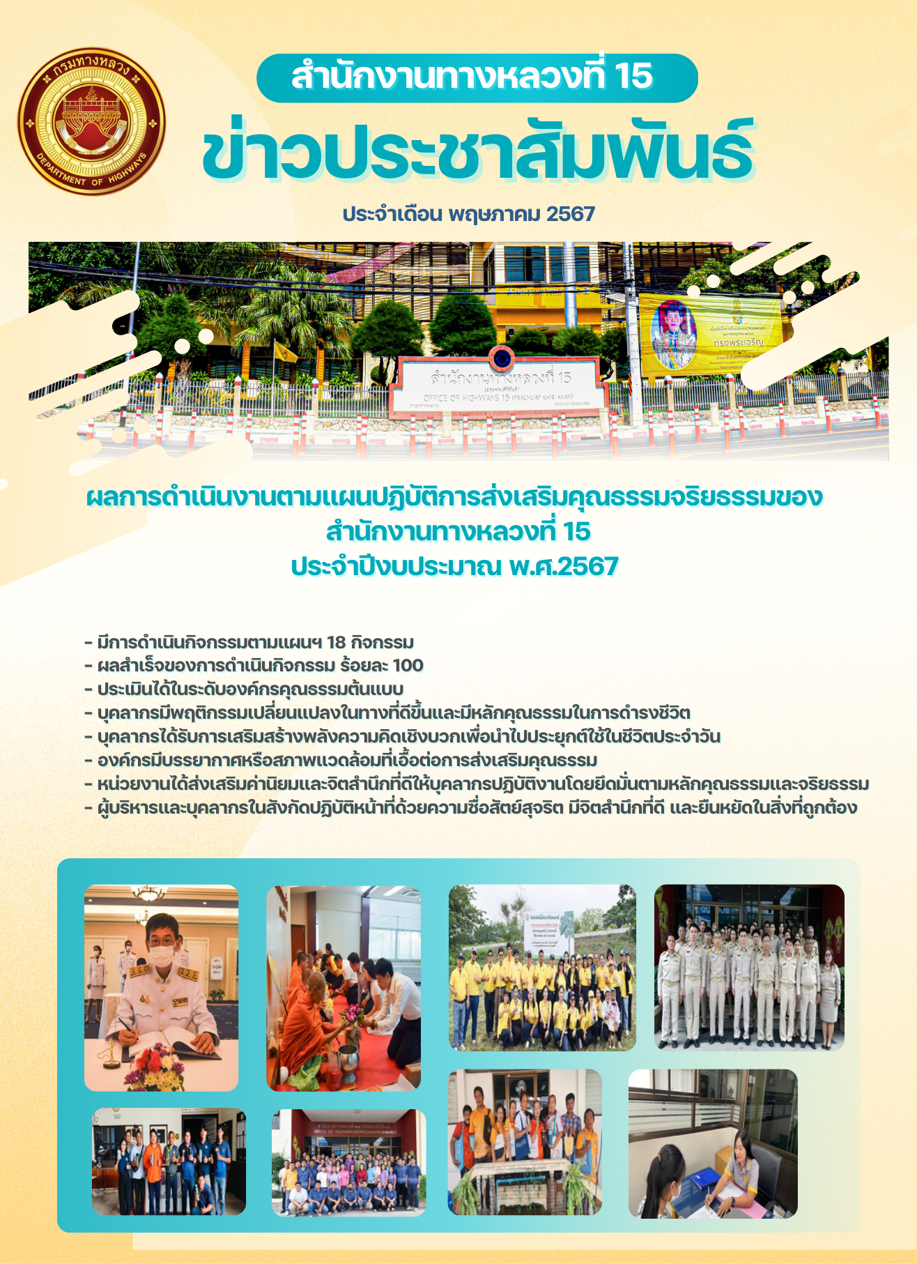 78 30/05/2567 รายงานผลการดำเนินงานตามแผนปฏิบัติการส่งเสริมคุณธรรมจริยธรรมของ สำนักงานทางหลวงที่ 15 ประจำปีงบประมาณ พ.ศ.2567