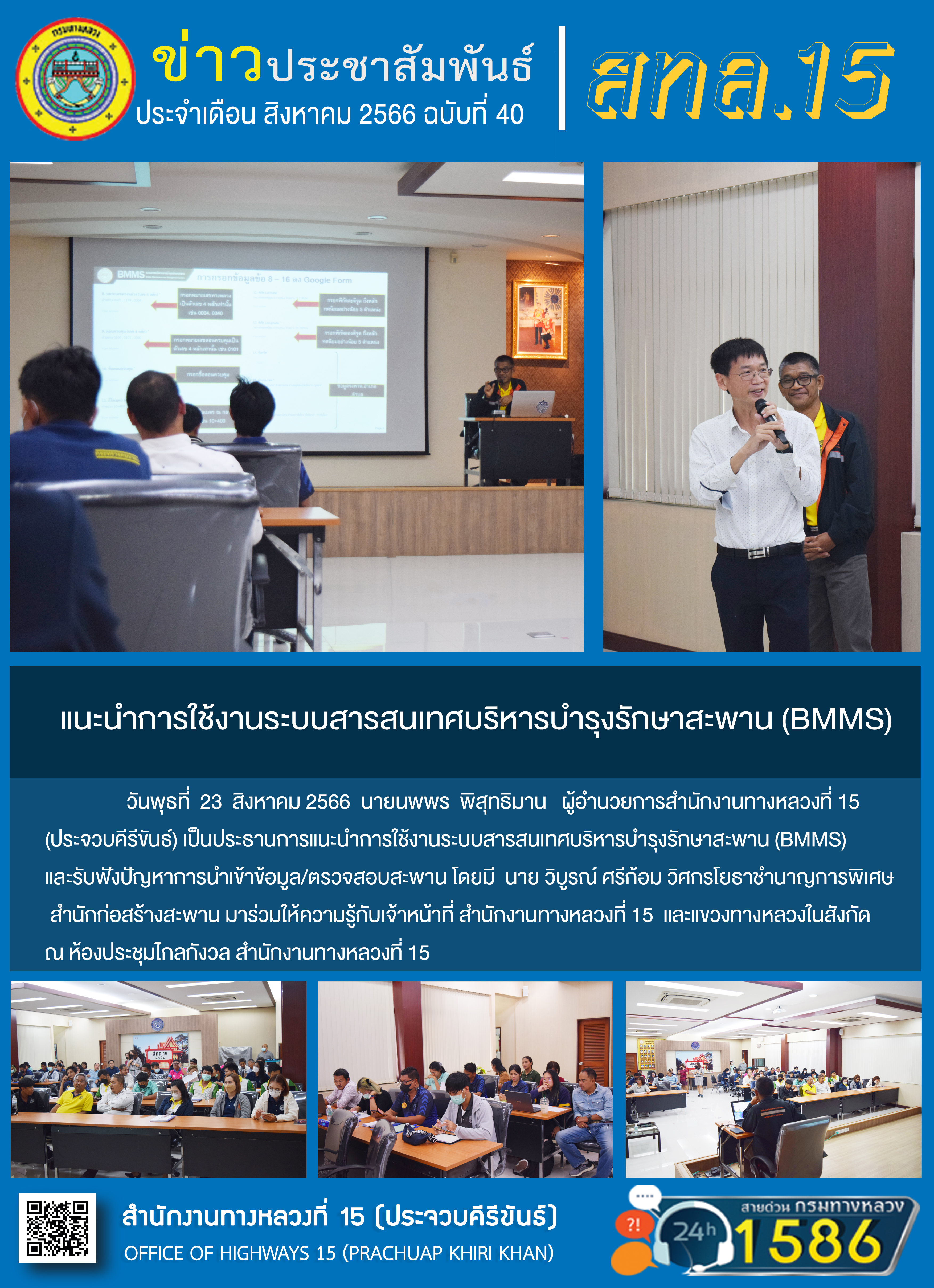 119 24/08/2566 แนะนำการใช้งานระบบสารสนเทศบริหารบำรุงรักษาสะพาน (BMMS)