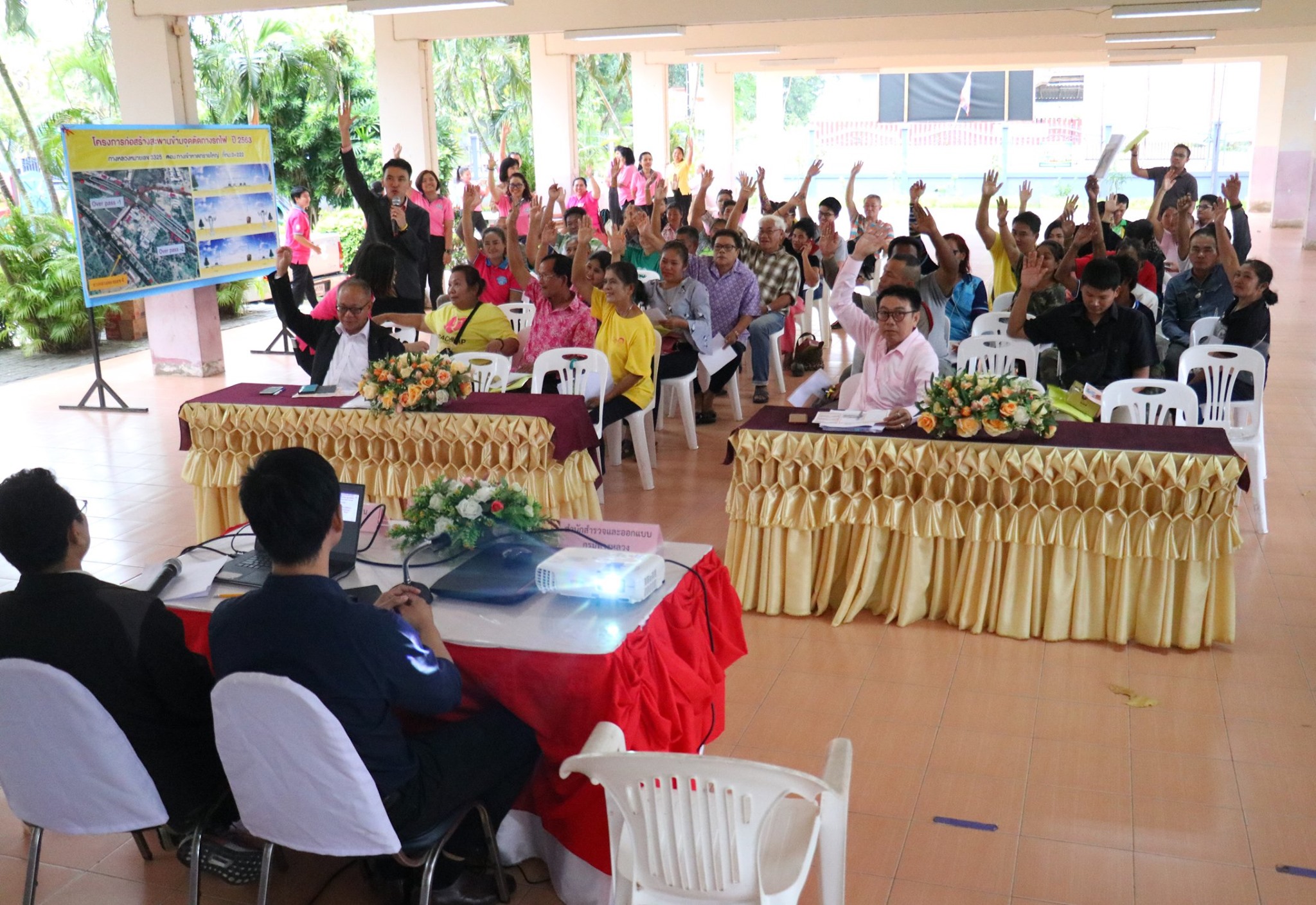 นายนรงฤทธิ์ พรหมประดิษฐ์ ผู้อำนวยการแขวงทางหลวงฯ ,นายเศรษฐ์ จันทอาด รองผู้อำนวยการแขวงทางหลวงฯ ,นายอนุสรณ์ ผาใต้ หัวหน้าหมวดทางหลวงหัวหิน ,นายชัชชัย พงษ์พิทักษ์ ผู้แทนสำนักก่อสร้างสะพาน ,ผู้แทนสำนักสำรวจและออกแบบ ได้ดำเนินการจัดโครงการ การมีส่วนร่วมของประชาชน สำหรับโครงการก่อสร้างสะพานข้ามจุดตัดทางรถไฟ ทางหลวงหมายเลข 3325 ตอน ทางเข้าหาดทรายใหญ่ ที่กม.0+222 ซึ่งได้เชิญผู้นำชุมชน ,ผู้แทนหน่วยงานรัฐและเอกชน ,ประชาชนในพื้นที่ เข้าร่วมรับฟังรูปแบบและการดำเนินงานก่อสร้าง ดังกล่าว โดยมี นายธนนท์ พรรพีภาส นายอำเภอหัวหิน เป็นประธาน ณ อาคารอเนกประสงค์ โรงเรียนเทศบาลบ้านเขาเต่า ต.หนองแก อ.หัวหิน จ.ประจวบคีรีขันธ์